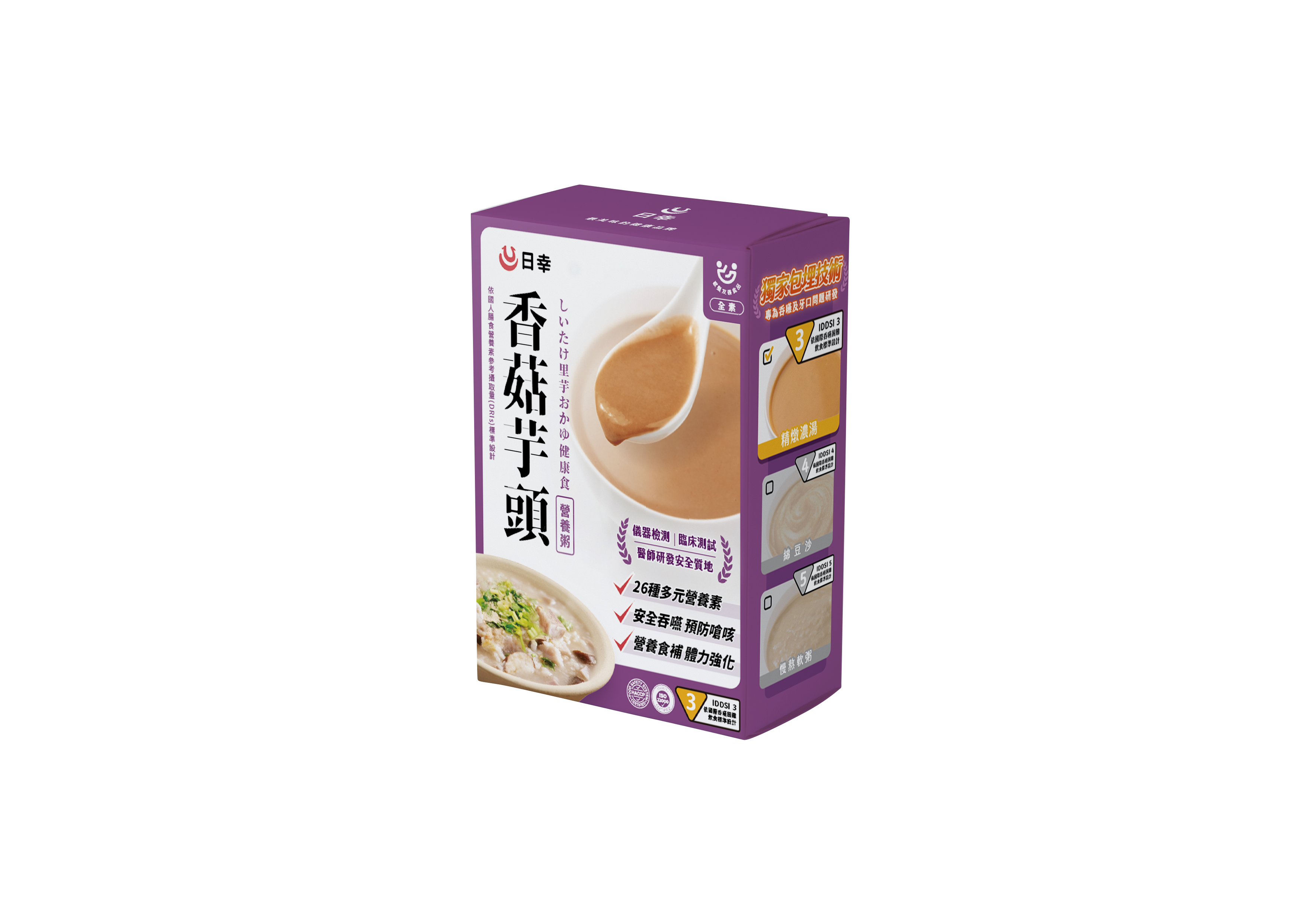 水、麥芽糊精、豆腐(非基改黃豆、硫酸鈣)、綜合蔬菜(芋頭、白菜、胡蘿蔔)、調味料(大豆沙拉油、芝麻、薑、椰子粉、食鹽、大豆蛋白(非基因改造大豆蛋白、玉米澱粉、脫脂豆粉、小麥蛋白)、辣椒粉、醬油(黃豆、小麥、食鹽)、香油(大豆沙拉油、芝麻油)、米霖(糯米、米麴、果糖、水、釀造醋、食鹽)、燕麥纖維素、小麥纖維素、香辛料(大茴香、肉桂、茴香)、香料(糊精、椰子油、油菜籽油、樹薯澱粉、中鏈三酸甘油酯、香料、辣椒抽出物、葵花油)、胡椒粉)、豌豆蛋白、難消化糊精、白米、香菇、芥花油、醬油、高湯粉(麥芽糊精、鹽、蔗糖、酵母萃取物、高麗菜抽出物、糊精、水解植物蛋白(大豆、玉米、小麥)、香菇萃取物)、礦物質(綜合礦物質(磷酸氫鈣、檸檬酸鈉、碳酸鈣、氯化鉀、鉻酵母(非活性酵母、三氯化鉻)、焦磷酸鐵、麥芽糊精、硒酵母、碘化鉀)、磷酸鎂、硫酸鋅、硫酸銅)、琥珀酸二鈉、維生素(綜合維生素粉(維生素C、維生素E(乙酸 dl-α-生育醇酯、麥芽糊精、辛烯基丁二酸鈉澱粉)、麥芽糊精、菸鹼醯胺、維生素A(麥芽糊精、阿拉伯膠、玉米澱粉、維生素A醋酸鹽)、本多酸鈣、葉酸(麥芽糊精、葉酸)、生物素、維生素B12(麥芽糊精、檸檬酸鈉、檸檬酸、維生素B12)、維生素D3(阿拉伯膠、蔗糖、玉米澱粉、中鏈三酸甘油脂、維生素D3)、維生素B1、維生素K1(阿拉伯膠、維生素K1、蔗糖)、維生素B6、維生素B2)、重酒石酸膽鹼、酵母維生素D)、玉米糖膠