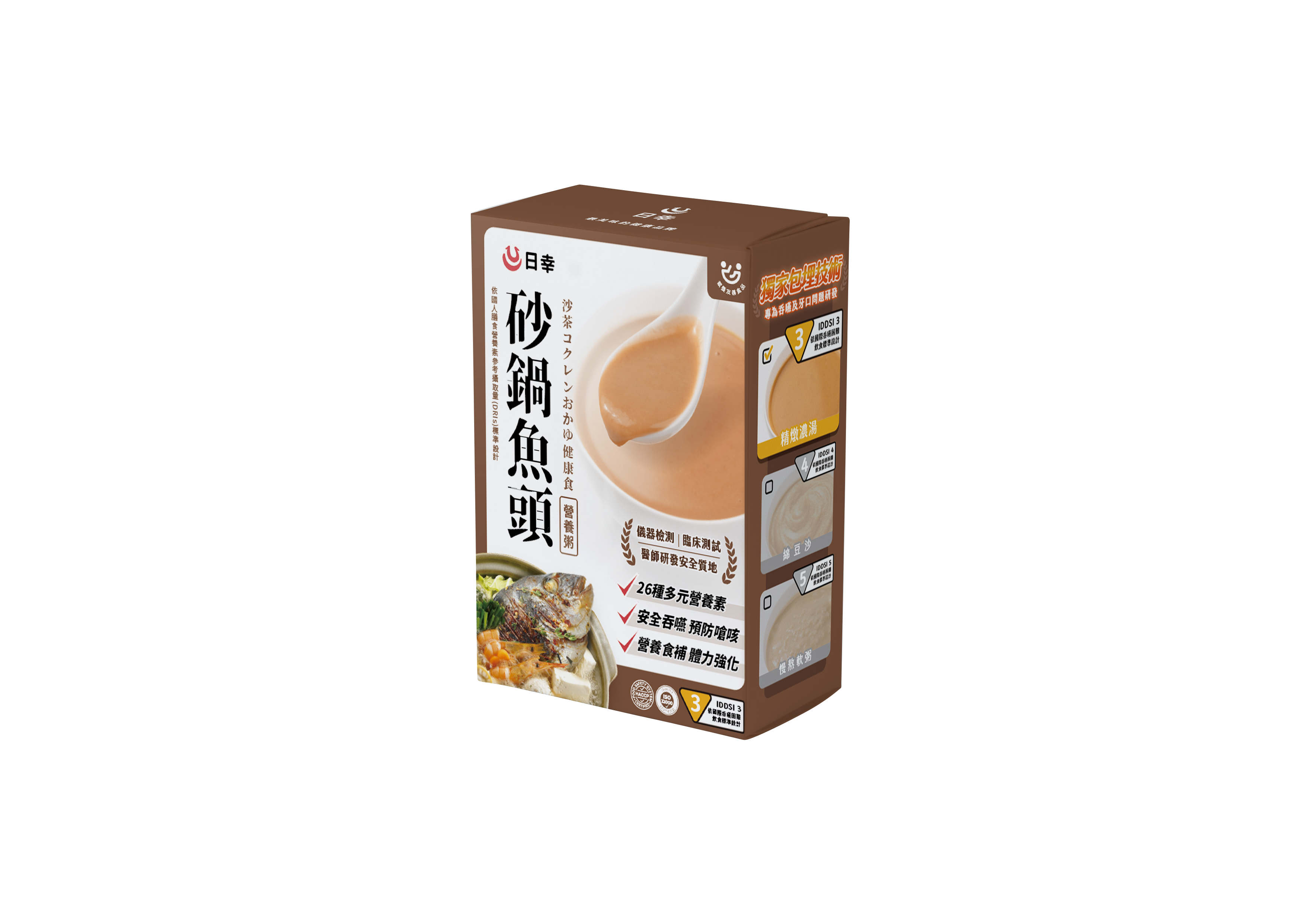 水、綜合蔬菜(番茄、白菜、青蔥、蒜頭、紅蔥頭、紅蘿蔔、白蘿蔔、薑)、麥芽糊精、鱸魚、鯛魚、難消化糊精、沙茶醬(大豆沙拉油、魚乾、蒜頭、南薑粉、椰子粉、蔥乾、芝麻、赤尾青、辣椒粉、食鹽、咖哩粉、胡椒)、分離乳清蛋白、米酒、釀造醬油(水、非基因改造黃豆、黑豆、小麥、鹽、蔗糖、酵母萃取物)白米、雞蛋白、豆瓣醬(水、辣椒、非基因改造黃豆、蔗糖、食鹽、非基因改造芥花籽油、白芝麻油、L-麩酸鈉、乙醯化已二酸二澱粉、乳酸、5′-次黃嘌呤核苷酸鈉二鈉、5′-鳥嘌呤核苷磷酸二鈉、DL-蘋果酸鈉、玉米糖膠)、芥花油、高湯粉(鹽、糖、麥芽糊精、玉米澱粉、雞肉抽出物、酵母萃取物、雞油、水解植物蛋白(大豆、玉米、小麥)、糊精)、礦物質(綜合礦物質(磷酸氫鈣、檸檬酸鈉、碳酸鈣、氯化鉀、鉻酵母(非活性酵母、三氯化鉻)、焦磷酸鐵、麥芽糊精、硒酵母、碘化鉀)、磷酸鎂、硫酸鋅、硫酸銅)、玉米糖膠、琥珀酸二鈉、維生素(重酒石酸膽鹼、綜合維生素(維生素C、啤酒酵母(含維生素D2)、維生素 E(乙酸dl-α -生育醇酯、乾燥葡萄糖漿、辛烯基丁二酸鈉澱粉、二氧化矽)、菸鹼醯胺、麥芽糊精、維生素A醋酸鹽(乾燥葡萄糖漿、阿拉伯膠、玉米澱 粉、維生素A醋酸鹽、維生素E(抗氧化劑))、本多酸鈣、維生素B12(麥芽糊精、檸檬酸鈉、檸檬酸、維生素B12)、維生素K1(阿拉伯膠、維生素K1、蔗糖)、維生素B1、維生素B6、維生素B2、葉酸、生物素)、酵母維生素D)