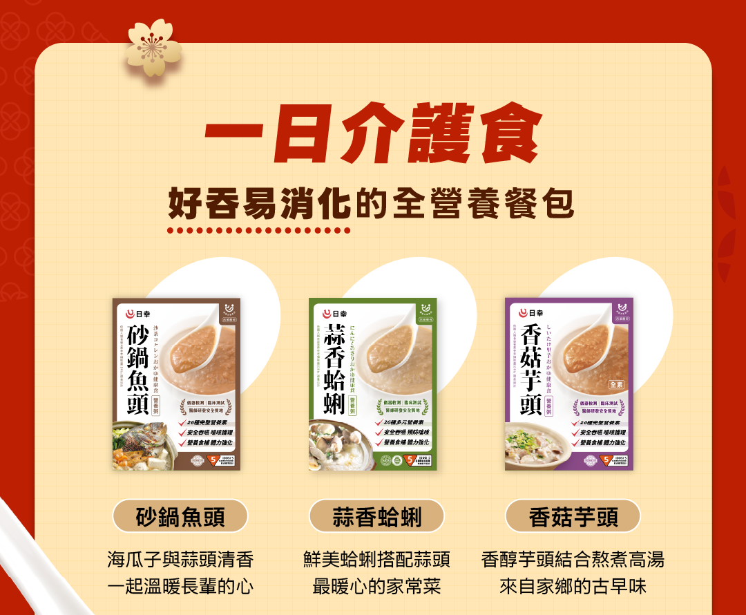 (慢熬軟粥|砂鍋魚頭 (IDDSI 5)、慢熬軟粥|蒜香蛤蜊 (IDDSI 5)、慢熬軟粥|香菇芋頭(IDDSI5))