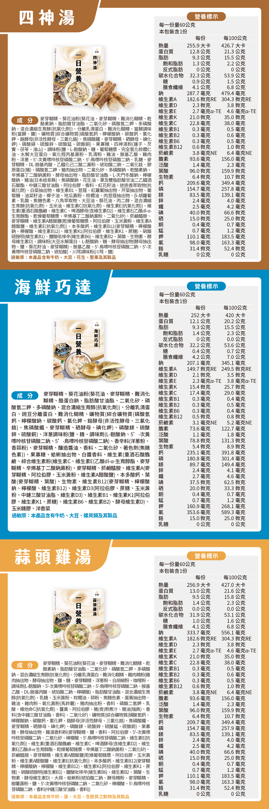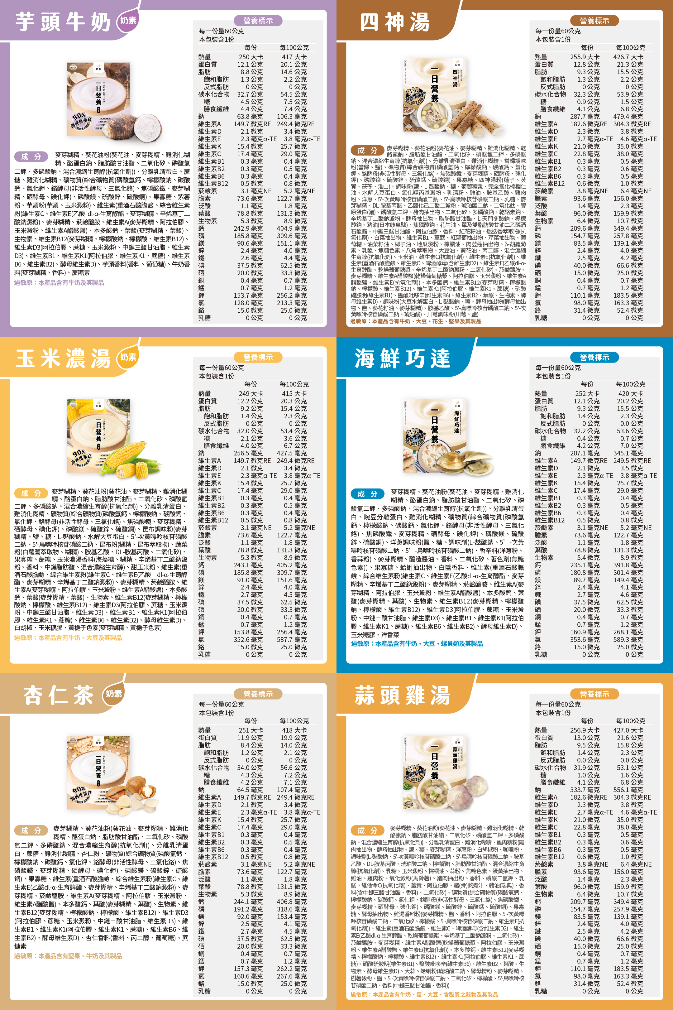 (玉米濃湯、海鮮巧達、蒜頭雞湯、四神湯)